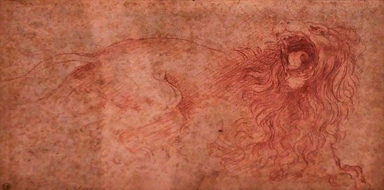 - Görsel: Leonardo da Vinci, Roaring Lion, kırmızı tebeşir, bej kâğıt.